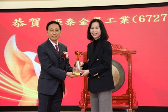 櫃買中心李愛玲總經理(右)致贈紀念品予本公司鄒貴銓董事長(左),恭賀上櫃掛牌成功。