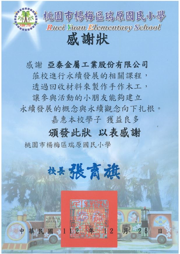 首頁 最新消息 亞泰金屬ESG活動-永續木作體驗課程 為推廣永續發展觀念及文化創意產業發展,亞泰金屬工業股份有限公司投入瑞原國民小學的環境教育及文化推廣,安排致力推廣木作體驗課程的木作森活講師及亞泰金屬同仁共同參與,進行介紹永續發展的相關課程,讓參與活動的小朋友能夠建立永續發展的概念,並安排透過回收材料來製作手作木工,期透過亞泰金屬的資源挹注,讓環保、永續觀念向下扎根,並促進木作藝術文化發展。